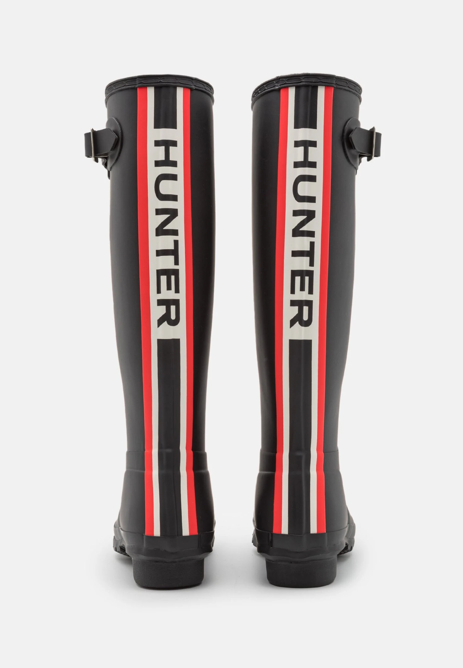 Hunter ORIGINAL Womens Tall Tri Colour Logo Backstrap Boot – Wellies – Black